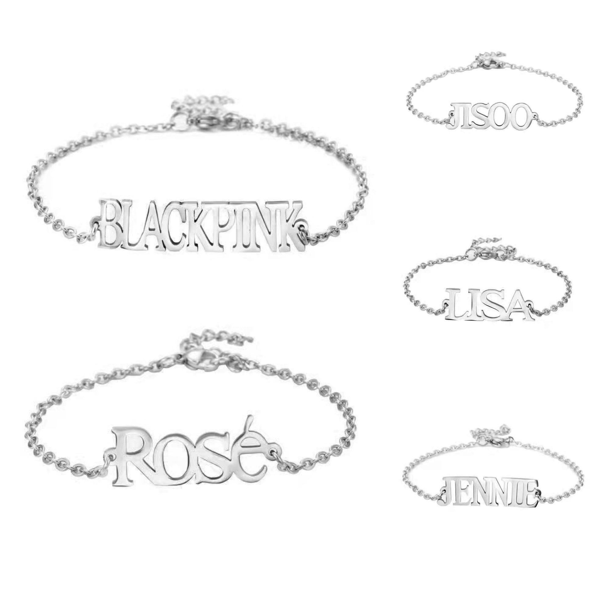 Bracelets Blackpink en acier inoxydable, hypoallergéniques : à porter ou à offrir à un autre blink !🩷 Disponibles avec le nom de tous les membres et également avec le nom du groupe.